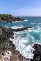 막혔던 가슴이 탁트이도록 시원스레 부서지는 파도, 신이 다듬은 듯 정교하게 겹겹이 쌓은 검붉은 육모꼴의 돌기둥이 병풍처럼 둘러쳐져 있는 중문관광단지 동부지역 해안가의 주상절리대는 자연의 위대함과 절묘함을 동시에 느낄 수 있는 천혜의 관광자원으로, 제주도 지정문화재 기념물이다. 아득한 옛날 지각변동으로 인해 이루어진 주상절리대를 보고 있으면 새하얗게 부서지는 포말 속에 석수장이의 애달픈 사연이라도 금새 실려오는 듯하다. 파도가 심하게 일 때는 높이 20m 이상 용솟음치는 장관을 연출한다. 천혜의 절경으로 인해 테마여행지로 각광받고 있는 명소다. 주상절리(柱狀節理, columnar jointing)란 주로 현무암질 용암류에 나타나는 기둥모양의 수직절리로서 다각형(보통은 4∼6각형)이며, 두꺼운 용암(약 섭씨 1100도)이 화구로부터 흘러나와 급격히 식으면서 발생하는 수축작용의 결과로서 형성된다고 하는데 이곳의 주상절리는 높이가 30~40m, 폭이 약 1km 정도로 우리나라 최대 규모이다.
